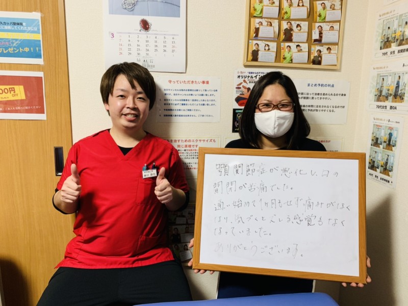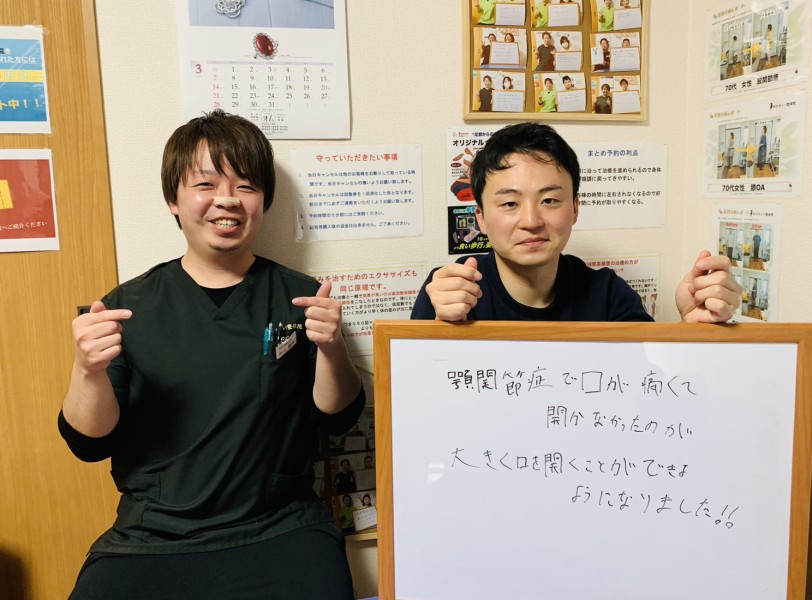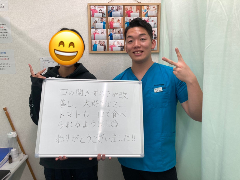「顎関節症で口が痛くて開かなかったですが、大きく口を開けられるようになりました!!!」