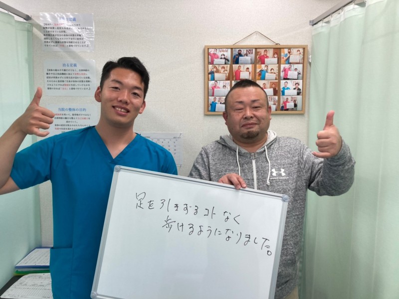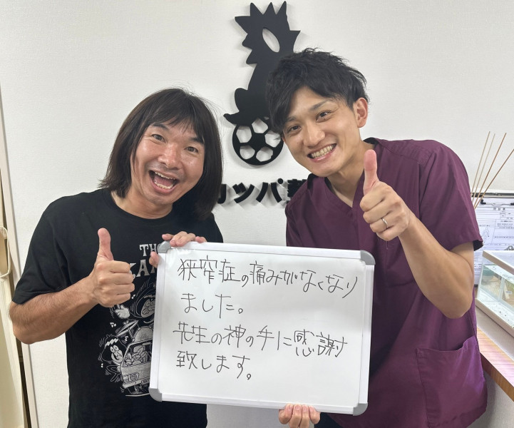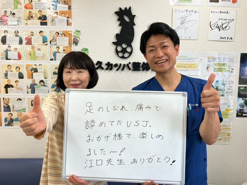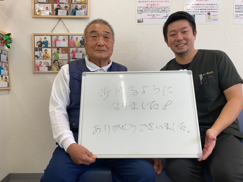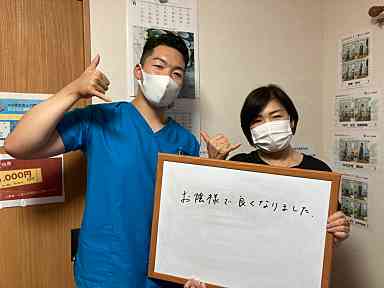 Q、当院や施術者に対してなにか感想があれば、お願いします。 A、現在、仕事も支障なく動けています。カッパ整体施術者の方には感謝しております。